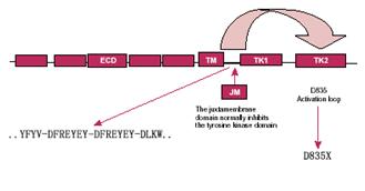 FLT3基因是Ⅲ型酪氨酸激酶家族成員的原癌基因,FLT3基因突變是AML最常見的基因突變,主要包括內(nèi)部串聯(lián)重復(fù)突變(ITD)和D835突變。FLT3基因突變是正常核型AML患者最常見的基因突變之一。其中ITD突變見于17-26%的AML患者,F(xiàn)LT3基因突變是獨(dú)立的預(yù)后不良因素。檢測(cè)采用普通PCR的方法,通過特異性的引物設(shè)計(jì),檢測(cè)患者的ITD突變。