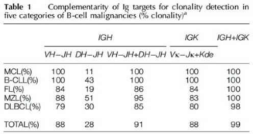 4.van Krieken, JHJM, et al. Improved reliability of lymphoma diagnostics via PCR-based clonality testing: report of the BIOMED-2 Concerted Action BHM4-CT98-3936. Leukemia 2007, 21(2):201-206.